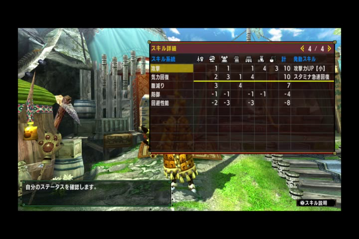 次は双剣を使いたいのでスタミナ系スキルを付けます。