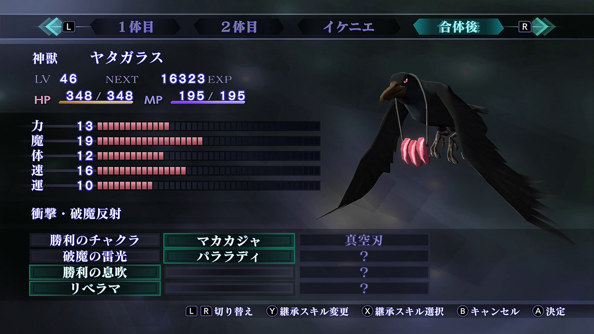 ここまでスキルの習得数は9個で、元々アバドンに継承させていたスキルを捨てさせているので、事前のイケニエ合体でスキル枠数を増やすのは意味がなかったです。