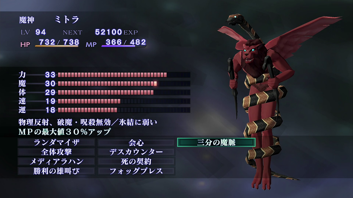 死の契約がかなり便利なスキルなので、最後にパールヴァティを別の悪魔に変えてから最終ダンジョンのカグツチ塔に挑みたいです。
